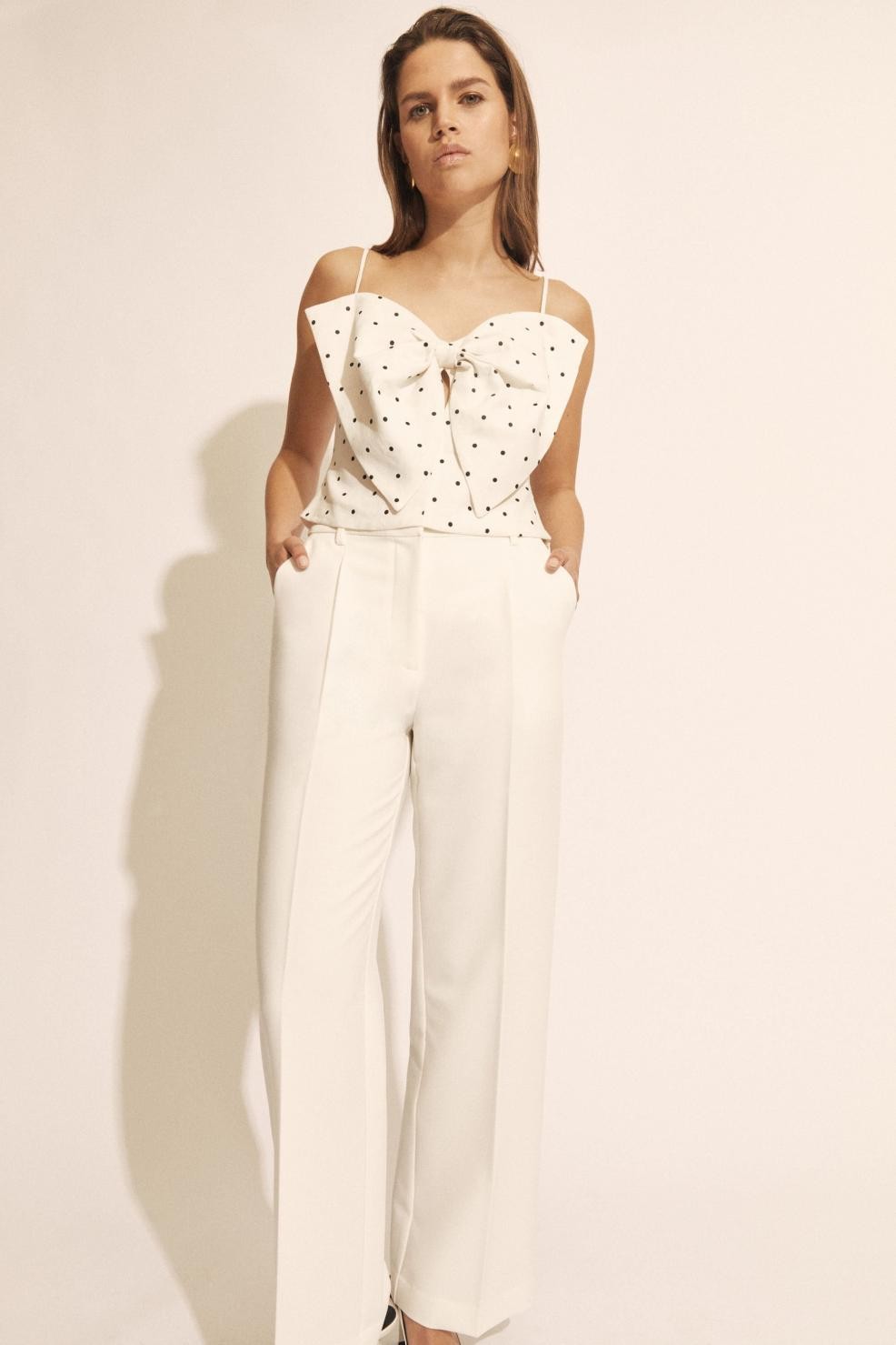 Vieda Λινό Μπλούζα με Φιόγκο μπροστά σε Λευκό Σποτ | Γυναικείες Μπλούζες Μόδας Bardot