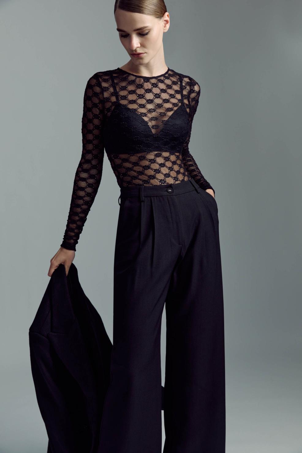Adoni Gjennomsiktig langermet topp i svart | Dame Bardot Mote Topper