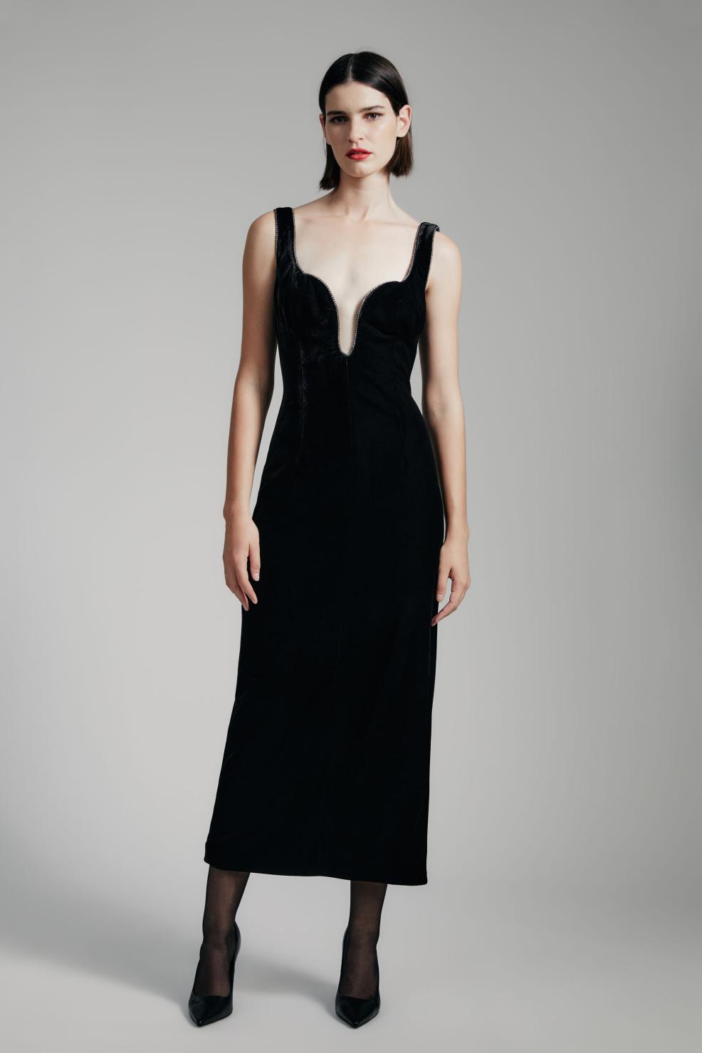 Brooklyn velour midikjole i svart | Bardot cocktail- og festkjoler for kvinner