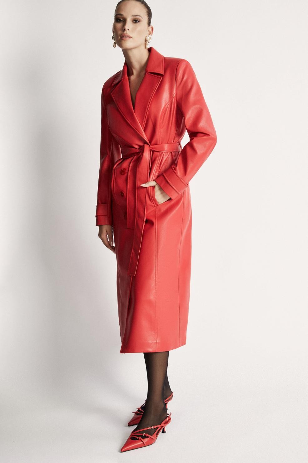 Vegansk trenchcoat i skinn i berømt rødt | Bardot-frakker for kvinner