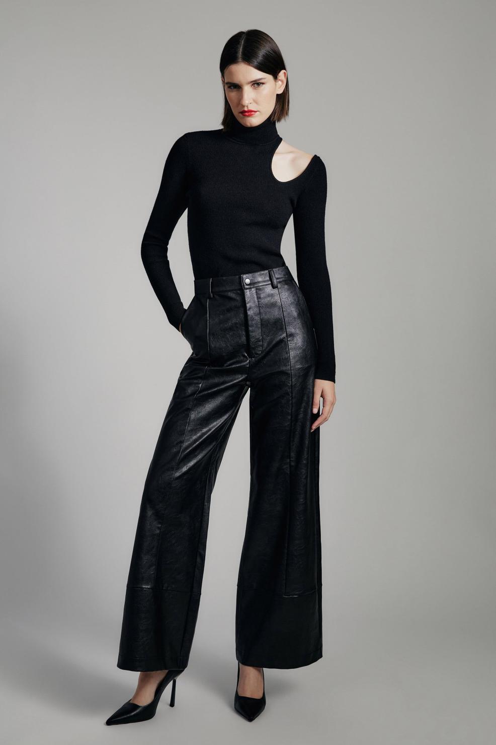 Asymetryczna dzianinowa bluzka Olesa, idealna na okres przejściowy w zimowym stylu, ma dopasowany krój z wysokim dekoltem, długimi rękawami i asymetrycznym wycięciem z przodu i z tyłu. Minimalistyczna, a zarazem efektowna, wzbogaci Twoją garderobę na chłodniejsze pory roku.