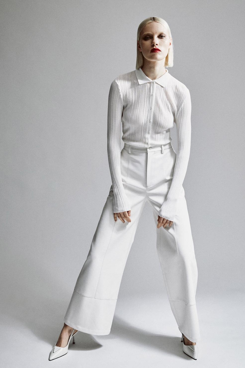 Świeży minimalizm. Koszulka polo Ayda Knit charakteryzuje się w pełni modnym dzianinowym krojem z długimi rękawami, dekoltem w kształcie polo i zapięciem na guziki z przodu.