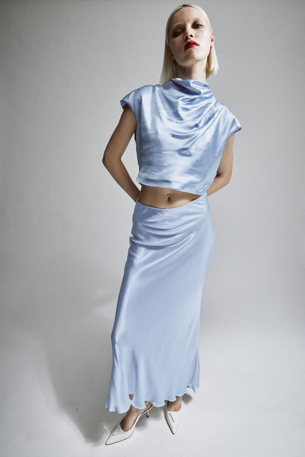 Monroe Saten Maxi Etek Softblue | Kadın Bardot Etekler